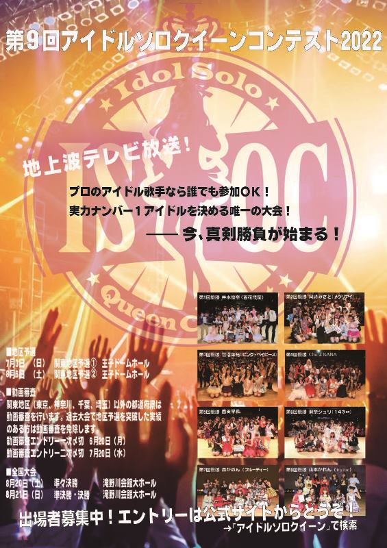 アイドルのソロの実力ナンバー1を決める「第9回アイドルソロクイーンコンテスト」の全国大会が、8月20日(土)と21日(日)に東京・滝野川会館大ホールで開催される。