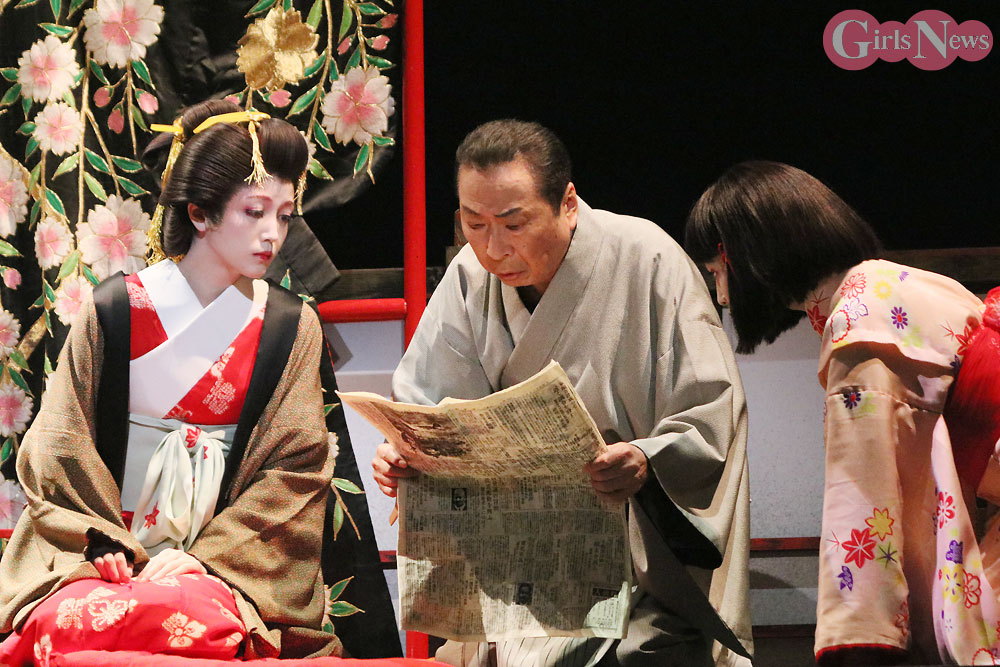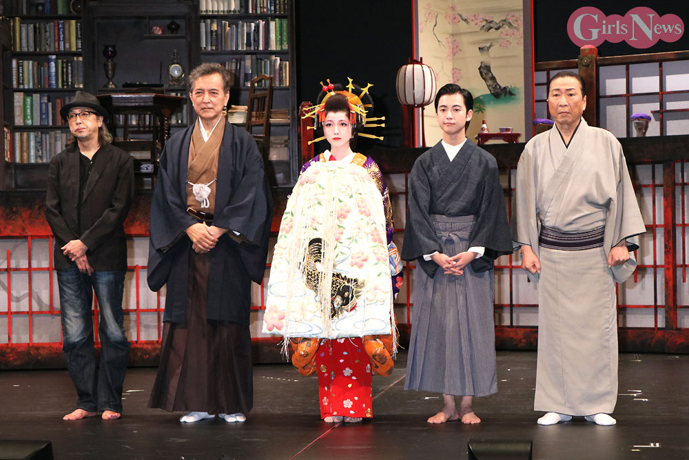 乃木坂46の久保史緒里が初めての花魁役に挑んだ舞台『桜文」が5日、渋谷PARCO劇場にて初日を迎えた。前日4日には公開ゲネプロが行われ、主演の久保をはじめ、共演のゆうたろう、榎木孝明、石倉三郎が取材に応じた。