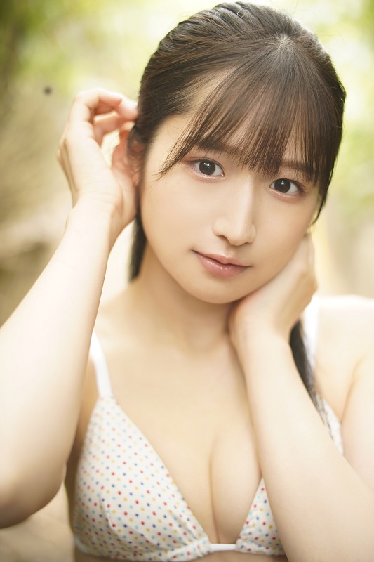 今回のグラビア撮影を振り返り、「海で撮影したのが特に印象に残ってます。少しだけですけど、海に浸かって、何年振りに海に入っただろう!?って感じでわくわくしました! スタッフさんが楽しくしてくださる方ばかりで、海での撮影が終わって振り返ったら砂浜に『貝賀参上』って書いてありすごく笑いました」と笑顔に。