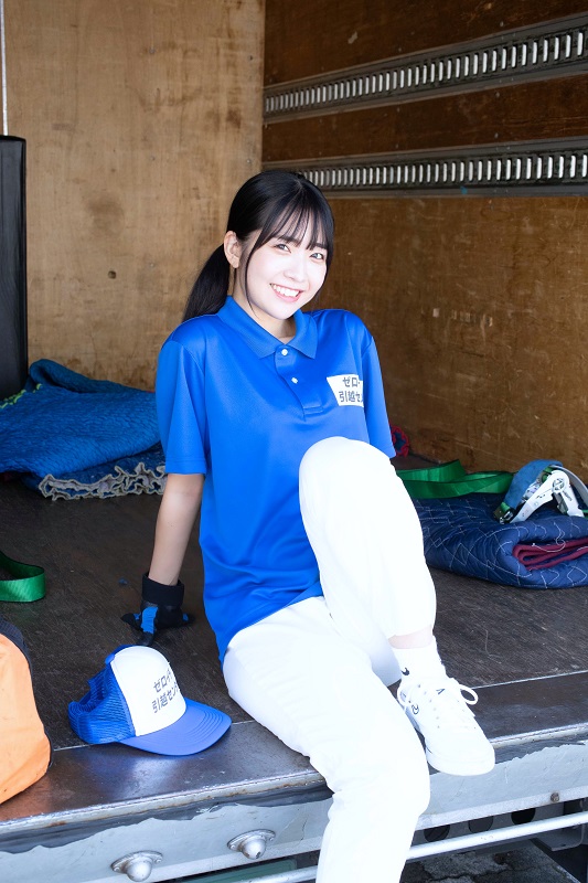 誌面では引っ越し屋さんのアルバイトに扮した天羽希純さん。「撮影では実際の本当にある引っ越し屋さんのトラックで撮影したり、お部屋にダンボール沢山の中撮影したり、本当に自分引っ越し屋さんなんじゃないかとたまに錯覚するような撮影でした!」と撮影を振り返った。お気に入りのカットは「そんなトラックの中で撮ったカットです! 引っ越し屋さんのトラックに乗ったのは初めてだったので純粋にワクワクしました!」と楽しめた撮影となったようだ。