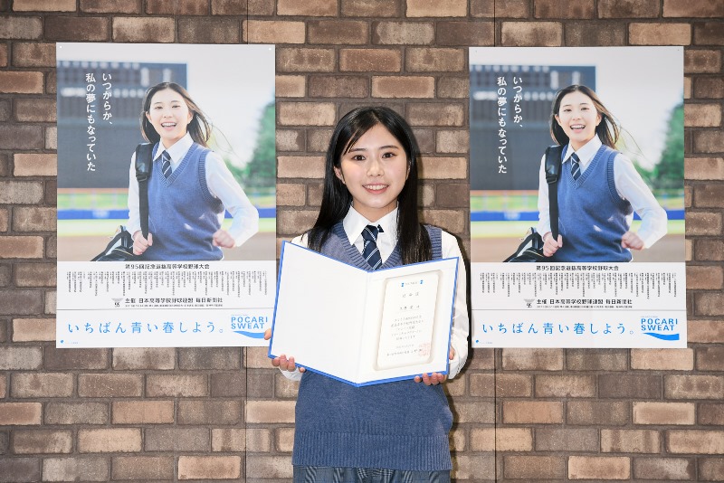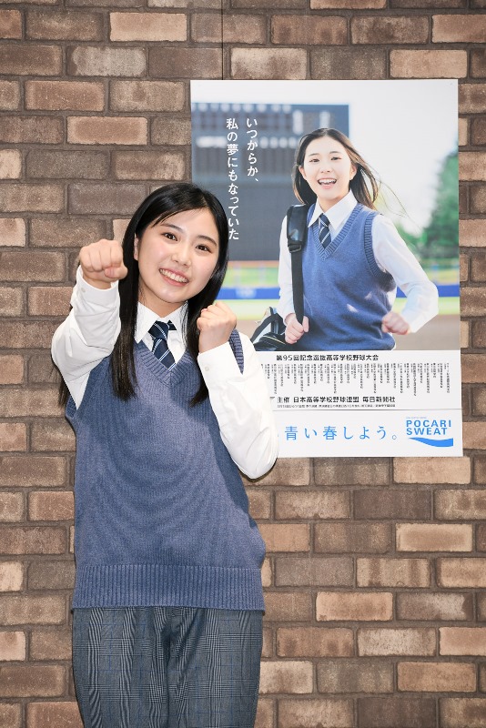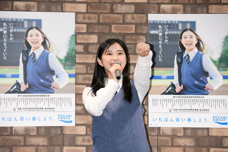 「第95回記念選抜高校野球大会」の応援ポスターが22日、東京・毎日ホールにて発表され、イメージキャラクターを務めるモデル・久慈愛さんが登場した。