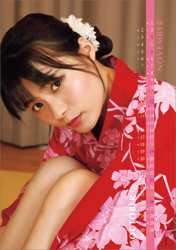壁掛け 1月始まりカレンダーとは全て異なる写真を使用。水着はもちろん、浴衣のショットも収録。さまざまなシチュエーションを堪能することができる。