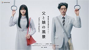 映像では、相鉄線の車内を舞台に、幼少期・思春期・反抗期など小学生から高校卒業までさまざまに変化していく親子の関係を、オダギリさんと山﨑さんをはじめ、6歳から46歳まで総勢50人の父娘キャストが演じている。