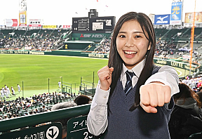「センバツ応援イメージキャラクター」の久慈愛さんが18日、阪神甲子園球場で開幕した「第95回記念選抜高等学校野球大会」の開会式の生放送に出演、その後開幕試合を観戦した。
