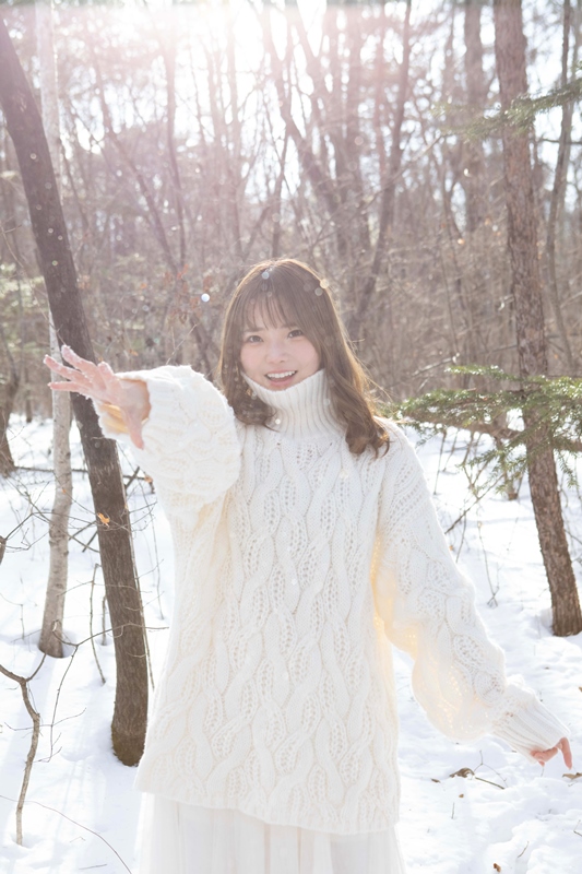 「前回、初めて表紙を飾らせていただいたときは長崎県の五島列島で撮影していただいたのですが、今回は長野県軽井沢で、雪景色や温泉やプールでの撮影をしました。最近さらに大人っぽくなったと言われることが多いので、新しい私もたくさん見れると思います!」と内容を紹介した。
