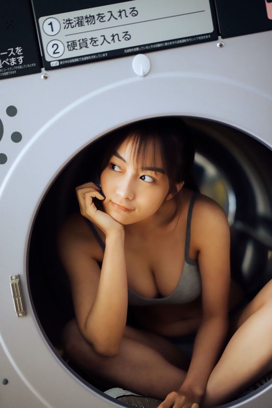 撮影中にはハプニングも。「実はコインランドリーで撮っているときに人生で初めて乾燥機の中に入らせていただいたのですが、途中でバランスを崩してしまって乾燥機で1周回されてしまったんです。入ったことある人ならわかると思うんですけど、洗濯機の中って以外と簡単に回ってしまうんですよね(笑)。洗濯機に回されるなんて人生で最初で最後の経験になりそうです!」と笑った。