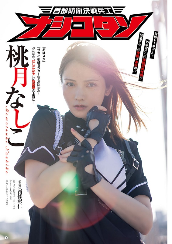 今回はユニークな企画グラビア。みんなの“なしこたそ”が防衛隊の長官に扮している。大人で艶やかな姿も披露。