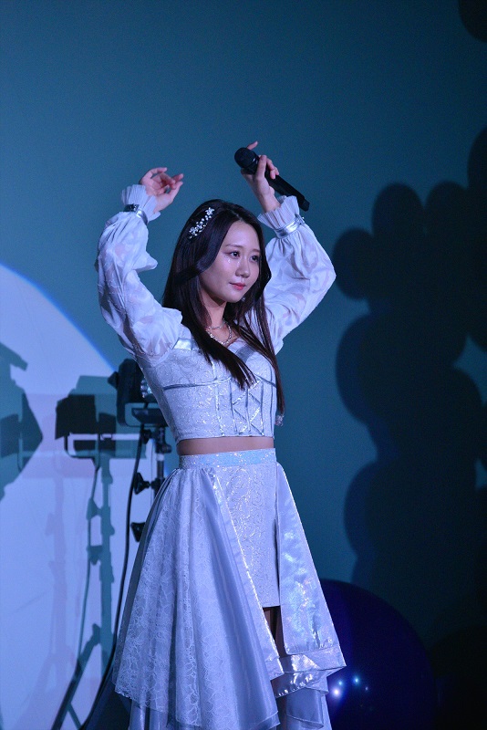 「みなさん盛り上がっていきましょう~!」と最新シングル曲でスタートした1st ライブ。この日に向けて古畑さんから「みんなと声を出して、一体感の生まれるライブを作っていきたい」と呼びかけていたこともあり、1 曲目から大きな声援が飛ぶ。キュートでポップな楽曲「4me」では、チャーミングな振付で客席と一体に。2018 年にリリースされた当時より振付を追加したとのことで、予想以上に揃った振付に「また今度やるので覚えててくださいね」と満足気な笑顔を見せた。1 部では「ミライクル」、2 部では「Moonlight parade」で撮影OK となり、客席ではカメラを向けて撮影を楽しむ。