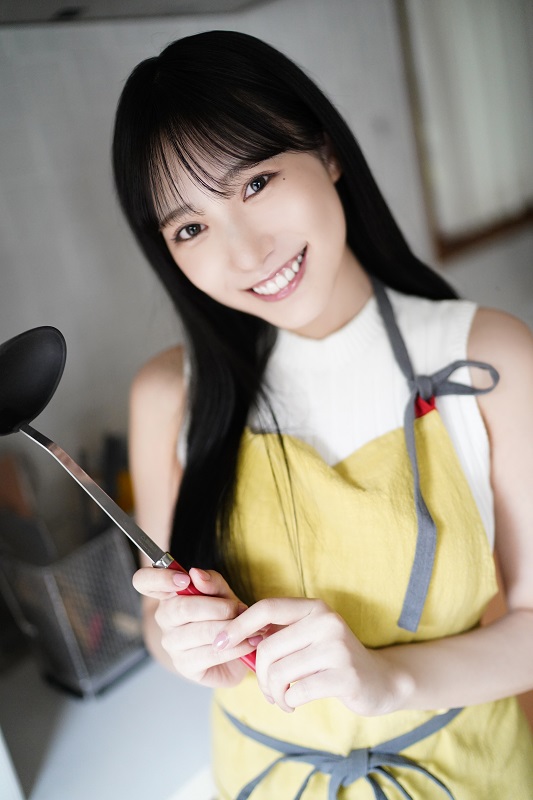 今回の初登場初表紙について、「本当に嬉しいです。今回は憧れだった、漫画コラボをさせていただけたんです! お料理ラブコメ『妻は僕を太らせたい!』はもともと読んでいて、私も料理やお菓子作りが好きなのでコラボが決まったときは本当に嬉しくてびっくりしました。正直、嬉しいのと同時に私で良いのかな?とも思ったんですが、任せていただいた以上、精一杯頑張りたくて何度も漫画を読み返したり、実際に漫画に出てくるお料理を家で作ってみたりしました!」と感激のようすだ。
