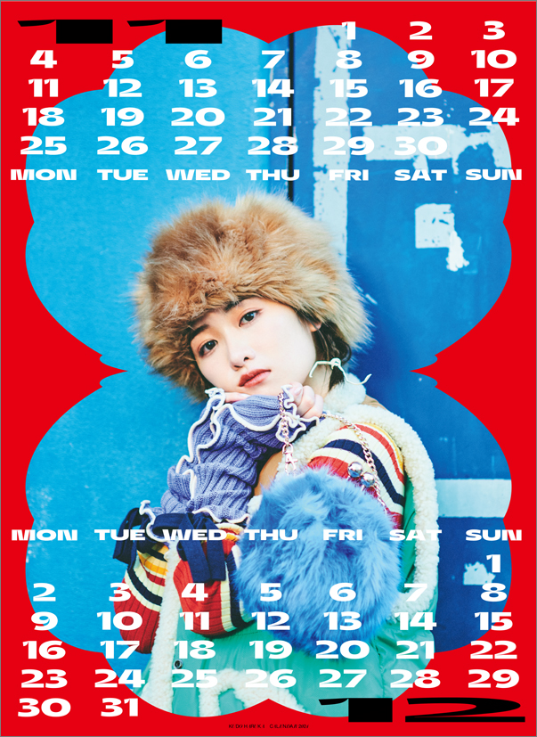 中面は4ページを公開。どのページもこれまでとはデザイン・雰囲気が全く異なった内容に。写真だけでなく、日付部分も全ページで異なったものになっているのが楽しい。またスタイリングや衣装にも注目だ。
