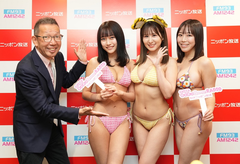 先日、ニッポン放送にて収録が行われた。グラビアクイーンの特別番組ということで、ラジオという画がないメディアにも関わらず、3人はビキニの水着姿で登場。永瀬はピンクのチェック、水沢は黄色のチェック、仲根は花柄の水着で颯爽とウォーキングでスタジオに入ると、決めポーズを披露。その模様を一緒に番組を担当する松本秀夫アナウンサーがいつもの野球中継さながらに実況し、収早々、スタジオは大いに盛り上がった。この模様はサンスポGoGoクイーンのオフィシャルX(旧Twitter)で動画で確認できる。