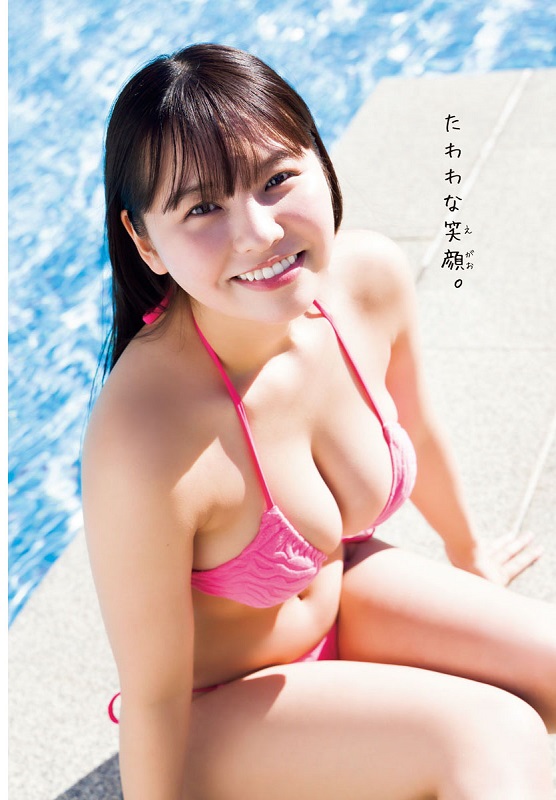 昨年6月にNMB48を卒業した本郷さん。今回の誌面ではプールサイドでの眩しいピンクビキニ姿だけでなく、たわわなボディが映えるチューブトップ姿から、オトナっぽいブルーの水着姿まで披露。笑顔満載の12ページに。限定QUOカード応募者全員サービス企画も実施している。