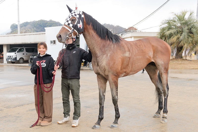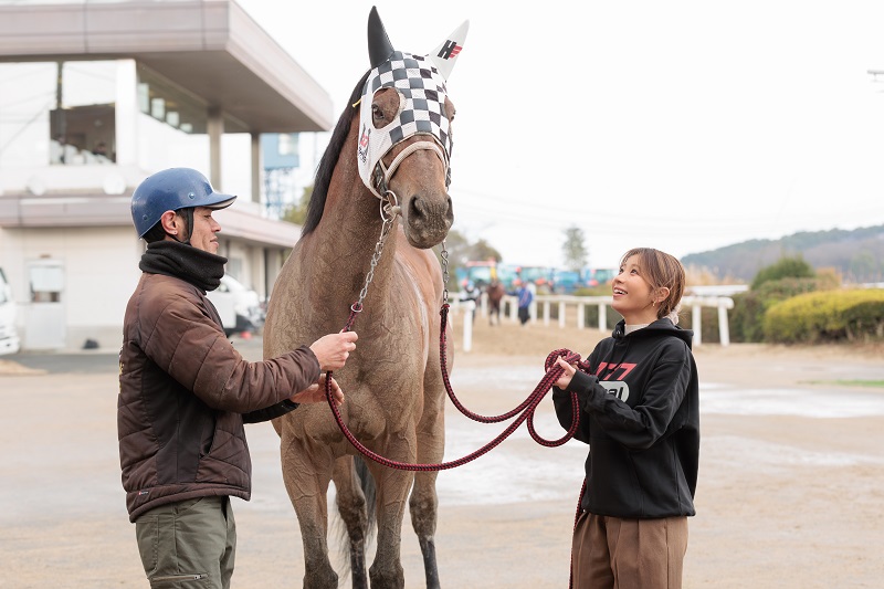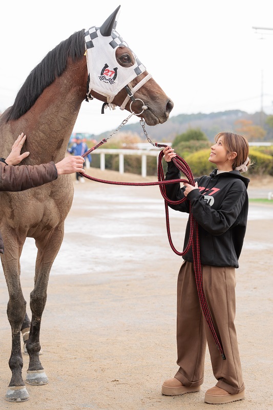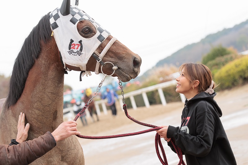 また、この日は勝ち馬のハクアイウィンザーと写真撮影を実施した。至近距離でハクアイウィンザーと対面した葉月さんは緊張しつつ、この日一番の笑顔を浮かべていた。競走馬と写真撮影することができ「ありがとうございました! 念願かないました!」と感謝。ギャンブル好きであり、動物好きでもある葉月さんは心から競馬を楽しんだようで、佐賀競馬をより一層盛り上げていた。