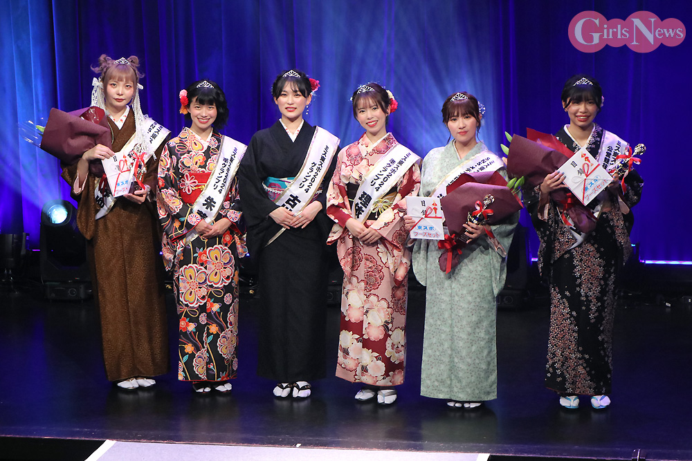 東京スポーツのイメージガール「ミス東スポ2024」の全受賞者お披露目発表会が3日、東京・浅草花劇場で行われ、グランプリの古川聖奈、準グランプリ(2名)の理依奈、朱華、公営競技・特別賞の杏樹宝、SNS・メディアPR賞(2名)の幕田みゆ、池田ゆうなの6人が着物姿を披露した。