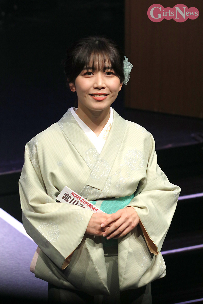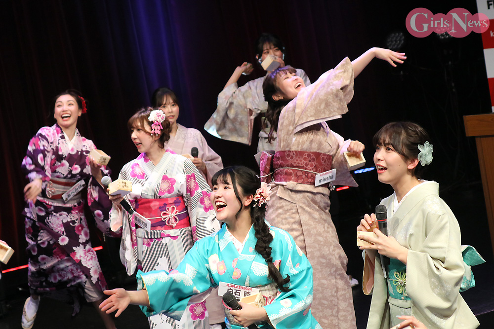 歴代「ミスFLASH」が大集合するイベント『チアチアFLASH』の決起会が3日、東京・浅草花劇場で開催され、ミスFLASH2024グランプリ(GP)の遠藤まめ・白石時・宮川みやびらが登壇した。