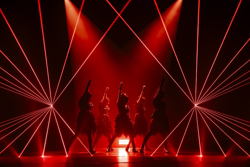 ハリウッド映画を彷彿とさせる重厚感のあるサウンドをバックに「THE END OF THE INNOCENCE」をテーマにしたストーリームービーを挟み、ダウンチューニングのヘヴィなリフとトラップのリズムが異次元のブルータルなグルーヴを生み出す「GIZA」へと突入する。LEDスクリーンに映し出される映像やレーザーや照明によって真っ赤なワールドへと染まったステージで、キレッキレのダンスとハイトーンボイスが絡み合う彼女たちの世代を超えたパフォーマンスに思わずフロアから「カッコイイ!」と言葉が漏れる。