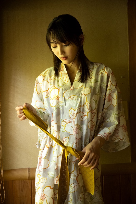 本作ではちょっと大人びた「初めての温泉ロケ」に挑戦。今回公開された誌面カットでは、浴衣の帯を緩める光景から、鏡越しに美ヒップを披露する様子、スレンダーかつヘルシーボディを見せており、彼女の魅力を惜しげもなくカメラで収めている。ビューティモデルとの温泉デートを疑似体験できる作品に仕上がっている。