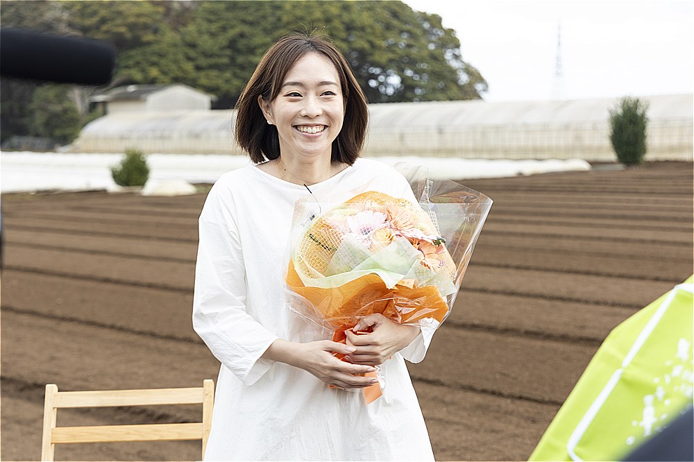 撮影を終えて石川さんは、「畑の中で大きなキャベツと立派な大根を持って撮影させてもらったんですが、やっぱり沢山の野菜はこうして畑からできているんだと思いました」と実感。「強風の中でキャベツを持って、朝早くから頑張ったので、そこを見ていただけたら嬉しい」とアピールした。