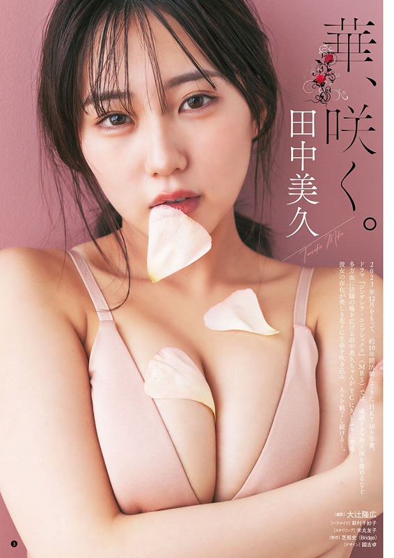 付録には、「田中美久とじ込み両面ポスター&田中美久特製クリアファイル」が、また読者サービスとして「田中美久応募者全員サービスQUOカード」が用意されている。