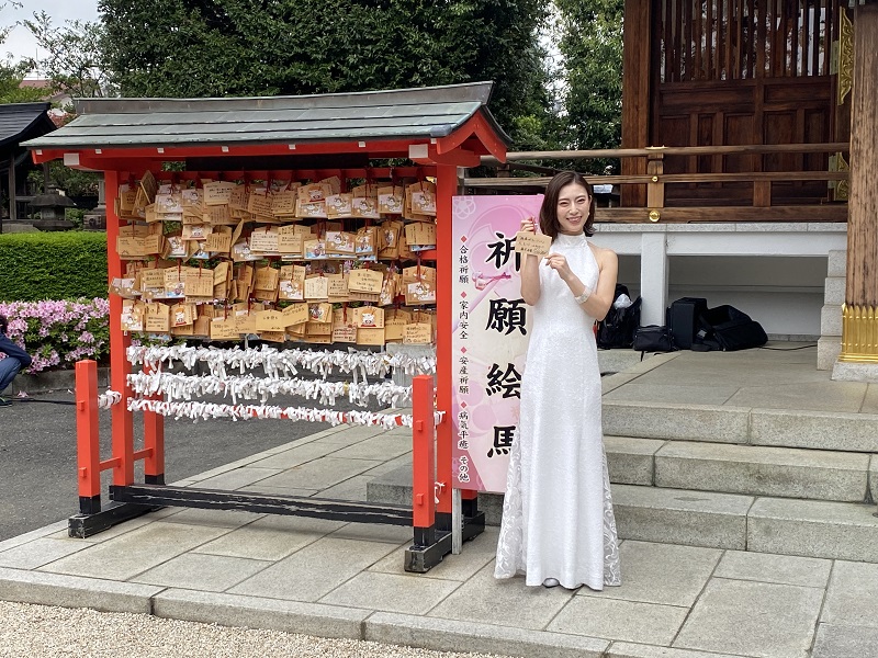 「令和の歌謡歌姫(ディーヴァ)」と呼ばれる藤井香愛さんが23日、地元である東京・中野区の沼袋氷川神社にて、新曲『純情レボリューション』(24日発売)のヒット祈願を行った。