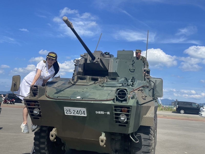 プロダーツプレイヤーにして、青森出身の津軽弁Gカップグラビアアイドルの熊谷麻音さんが21日、防衛省自衛隊青森地方協力本部主催「はまぎり来航」イベントにて一日艦長に就任した。