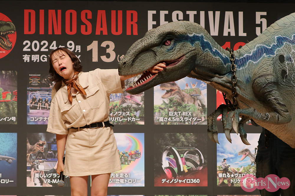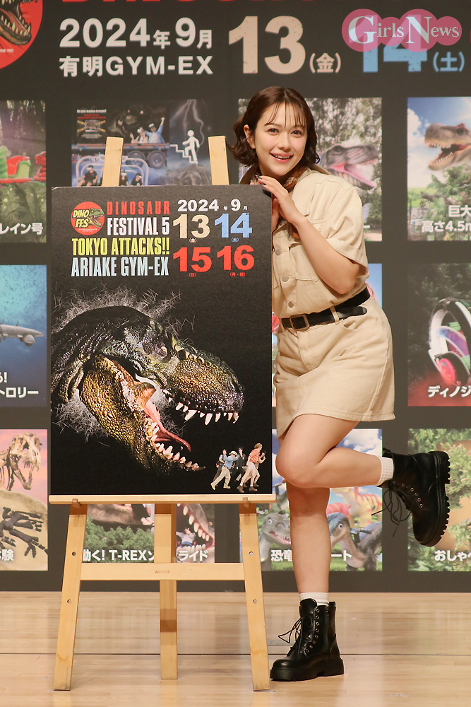 HKT48の元メンバーでタレントの村重杏奈さんが11日、品川ザ・グランドホールで開催された「ディノフェス」開催告知 PR イベントに登場した。