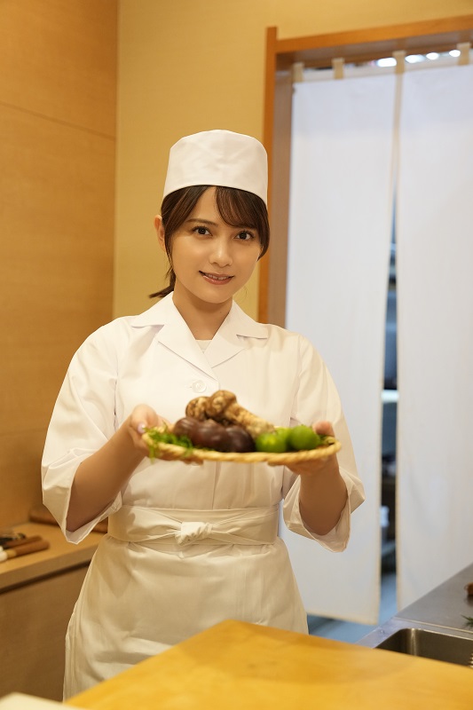 味いちもんめ+桃月なしこのコラボ企画については、「料亭で撮影させていただき、板前や中居に扮しました! 私は普段料理をしないので、板前をやると聞いてドキドキしていたのですが、実際にお店の方に調理器具の使い方や箸の持ち方、中居さんのお作法等をお聞きして撮影をしたので、なかなか、さまになっていたのではないでしょうか? 撮影にでてきた松茸の土瓶蒸しがすごく美味しそうで今度はプライベートで食べに来たいなと思いました」とユニークな撮影を振り返った。