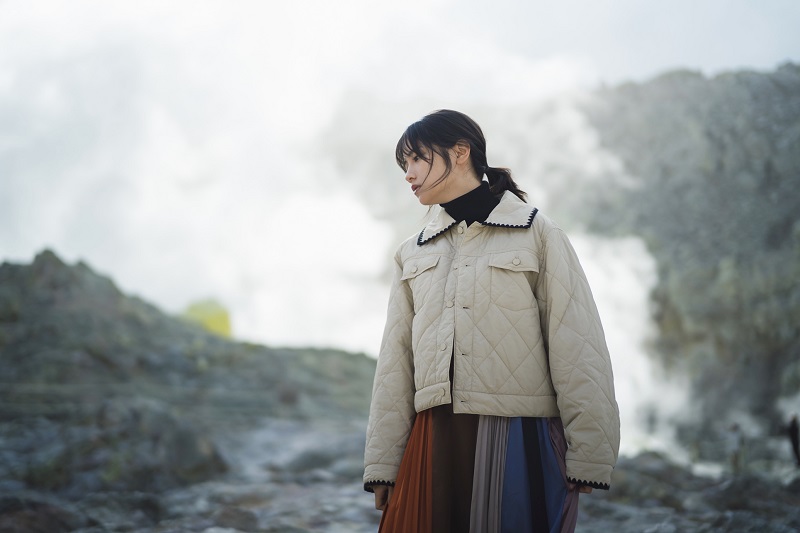 北海道の女満別で行われた今回の撮影。「硫黄山で硫黄の匂いを沢山嗅ぎなら撮影したり(笑)、天然の露天風呂に入って撮影したりと自然に囲まれた撮影でした! 撮影時期は10月だったのですが、10月の北海道はすでに肌寒くて、一足先に秋を感じていました」と、エピソードを語った。