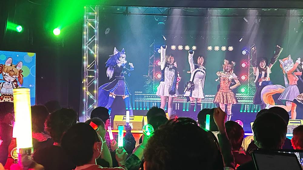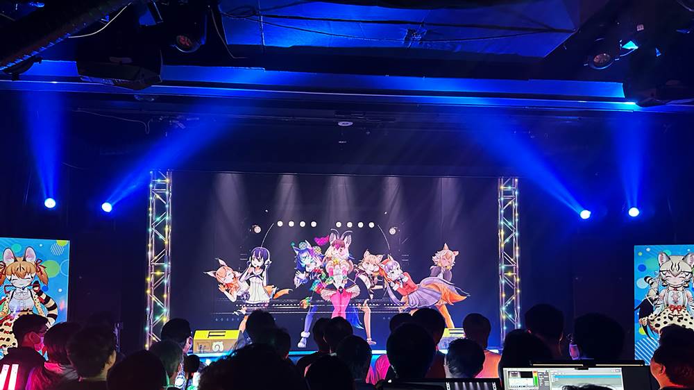 けものフレンズプロジェクトから登場したVtuber「けものフレンズVぷろじぇくと」が 9日、ぷろじぇくととしては初めて観客を入れてのリアルライブ『けものフレンズ LIVE はろー じゃぱん!』をShibuya Freedomにて開催。舞台『けものフレンズ』に出演する佐藤遥(マンモス役)と野口真緒(サーベルタイガー役)もサプライズで登場した。ここでは、その夜公演の公式ライブレポートを紹介する。