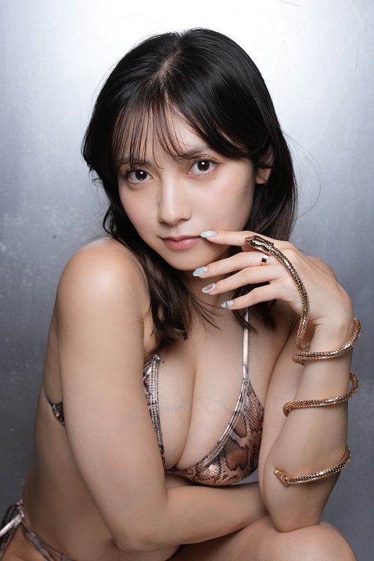 「なんと2ヶ月連続でのヤングキングBULLさん表紙です! 2024年のラスト、そして2025年の一番最初という記念すべき号の表紙を飾ることが出来てとても嬉しいのと同時に縁起の良さを感じます」と喜びを表す桃月さん。グラビアの内容について「今年はへび年ということで、今回のテーマは『蛇万歳』。全部の衣装が実は蛇と関連しているんです!」と紹介。「蛇柄の衣装や、白蛇の脱皮?のような衣装を着たり…全体的に強い女感が出てるかなと思います。ぜひこのヤングキングBULLで新年を感じてもらえたら!」と語る。