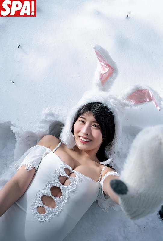 誌面ではちょっとセクシーな雪うさぎに扮したちとせさん。雪見酒を楽しむ彼女のカラダに異変が!?