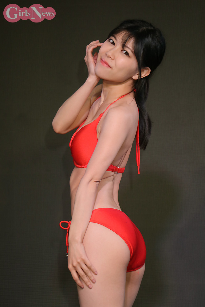 「特技はキックボクシング、ダンス、歌です。グラビア挑戦は母に反対されましたが、グランプリを取って見返したいです。得意なハイキックを披露します。(ハイキックを披露)」