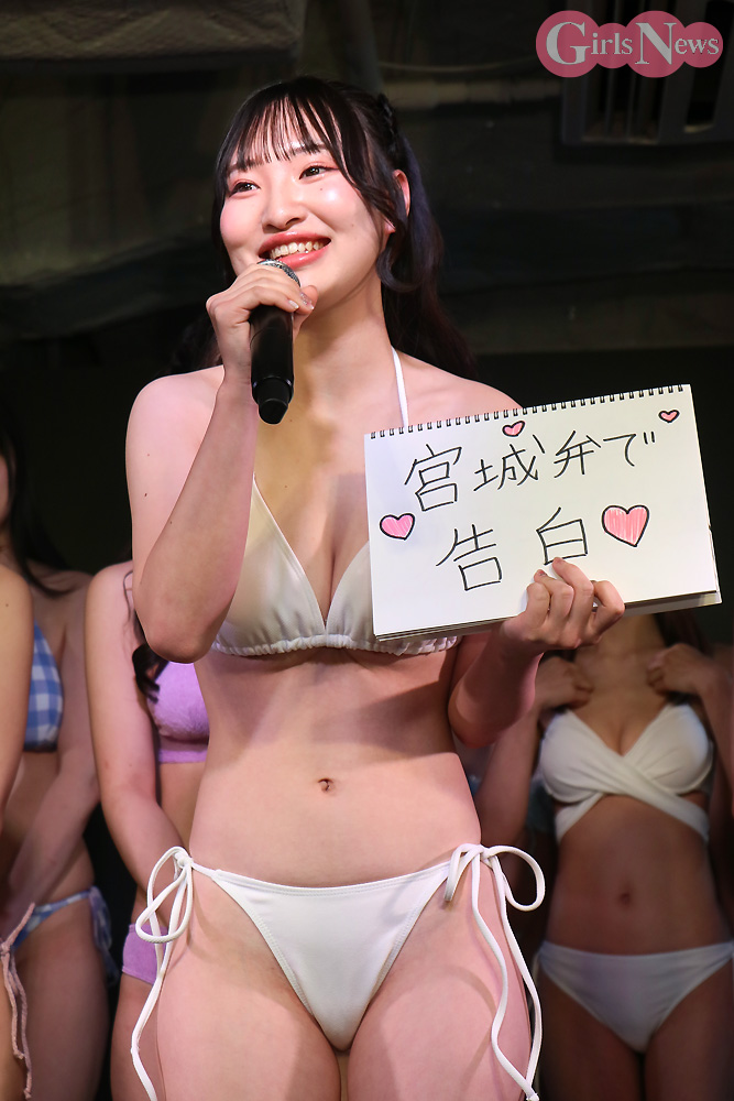 「3月まで保育士でした。趣味はガンプラ作りと推し活。目標は表紙を飾るグラビアアイドルになること。宮城弁で告白します。「グランプリになったらやりたいことがあるっちゃ。応援してけろ!」予選1位通過を目指します」