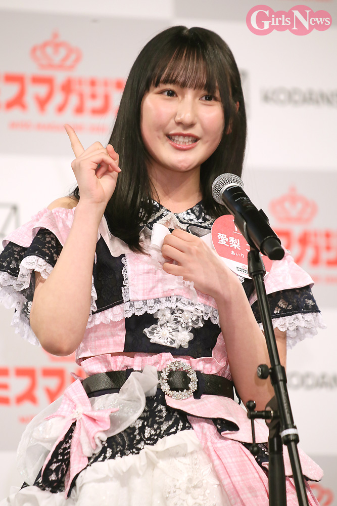 最年長の21歳。得意な料理と人懐っこさが魅力で、夢はグランプリ獲得と写真集イベント開催。可愛らしさを強調した衣装で、手話での自己紹介を披露。初々しさと大人の魅力を両立させた。