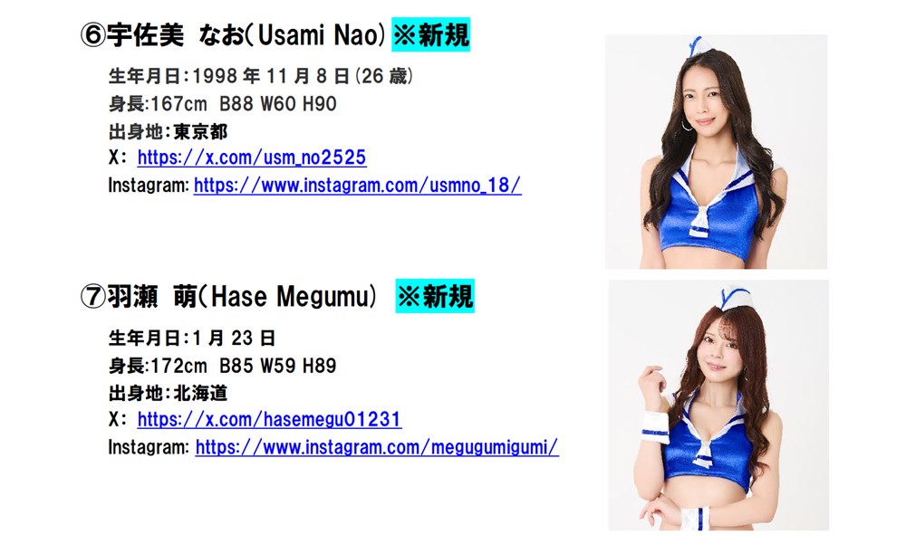 新メンバーの凛咲子は「博多の無敵ボディ、りーちゃんです。K-1ガールズになれると思っていなかったので不安なこともありますが、たくさん勉強して行きたいと思います」と自己紹介。「なんで私がK-1のオーディションに受かったのかというと、多分、何もできなくて三点倒立と前回りを水着でやったんです。絶対それじゃないかなと。やってよかったなと思います」とユニークなエピソードを披露。宇佐美は「K-1ガールズは、もともと凄くなりたかったので、こうして青い衣装を着られることがとても嬉しいです」と喜び、「私は小学校の頃にK-1を見て魔裟斗選手を応援していたので、こうやって携われるのが嬉しいです」と語った。