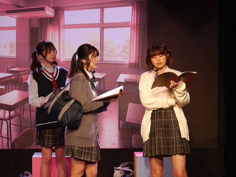 「“朗読演劇”ということで、朗読の良さも演劇の良さも詰まっています。楽しさはもちろん、公演ごとに新たなものが生まれるのかなと思っています」と語ったのは北野さん。大西さんはゲネプロでの自身の点数を「80点」と評価。楽しさは「98点」だったそうで、「初日から熱量を120%まで上げて、千秋楽まで6人で突っ走っていきたいです。私は27歳ですが、今回は女子高生の役で、楽屋でも稽古場でもJK(女子高生)みたいな気持ちで、毎日が青春、キラキラしていました。それが明後日もう終わってしまうのが寂しくて……それくらい楽しい期間でした!」。