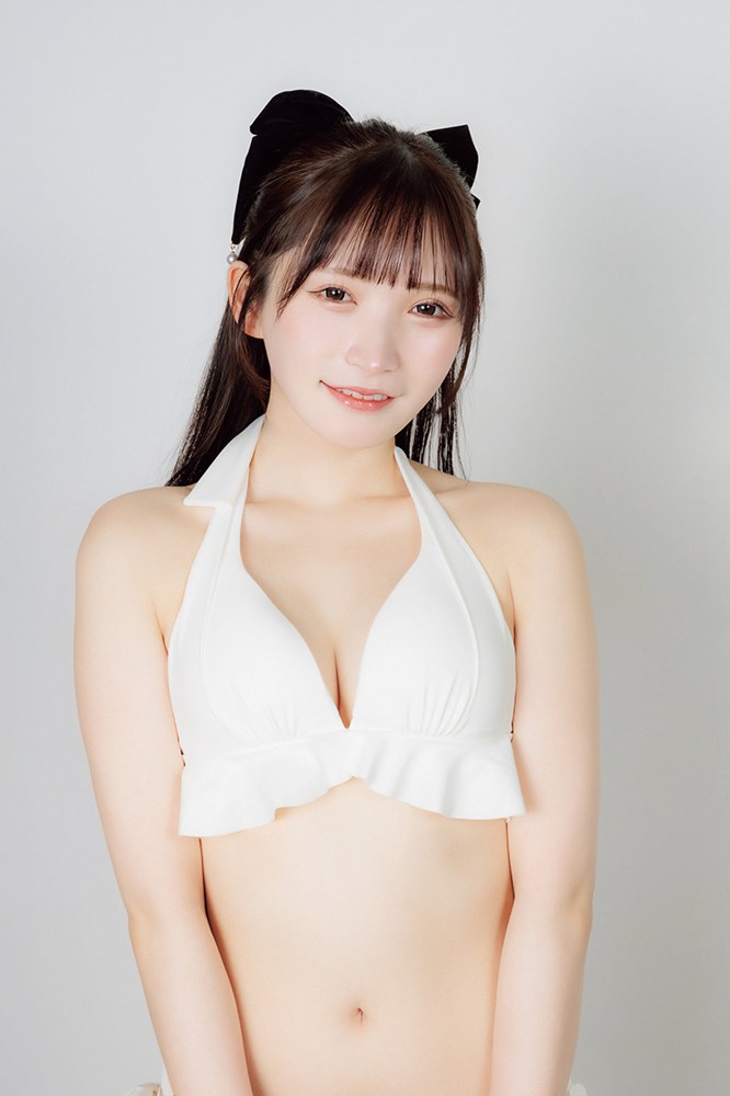 橘綾乃(神奈川、年齢非公開、145cm、B80/W56/H79、A型)は、女優から初のグラビア挑戦。「ロングヘアをショートにして白いビキニで新鮮な気持ちで臨んだ。ビキニの紐が駅でほどけるハプニングもあった」と明かし、会場を沸かせた。ミスヤングチャンピオン出身の先輩を追いかけたいと語った。