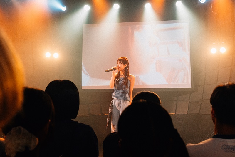 オープニングでは柔らかな照明とSEが会場を包み込み、ステージ中央にデニムスタイル(Y2Kファッション)に身を包んだ金子みゆが登場。会場に集まったファンへの第一声は「みなさんこんにちは〜!!」という明るい一言とともに、メジャーデビュー初となる1曲「アタシのハートに降参ね」でスタート。明るくポップなメロディーに合わせて自然体の笑顔を見せ、アイドル時代とは一味違う、力強くも繊細な歌声で観客を一気に引き込んだ。続く「おSHUSHI」では「サビで手を振ってね〜」と呼びかけ、会場は柔らかな一体感を演出。