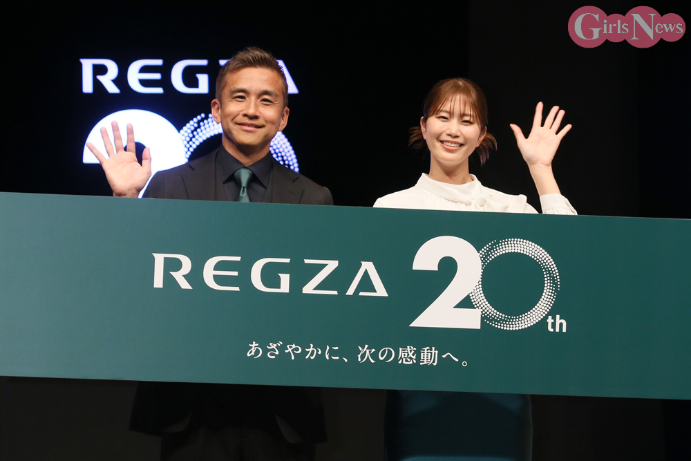 ゲストによるトークコーナーでは、元サッカー日本代表の稲本潤一さんもゲストとして登壇し、稲村亜美さんと共に新商品を実際に体験しながら、レグザでのW杯観戦について語り合った。
