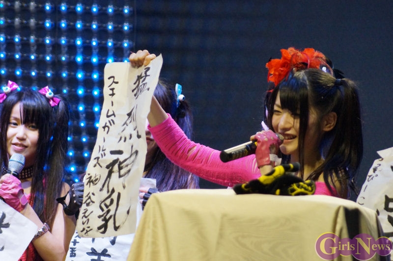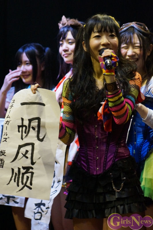 また、ファンにも2013年の目標を質問し、スチームガールズの小柳朋恵 推しのファンは「朋恵とディズニーランド行くぞ!」と絶叫すると、小柳朋恵さんは「あのぉ! 無理です。」と完全否定。すると桜雪さんは「いつかディズニーランドデートという企画があるかもしれないし・・・。」とこちらもナイスフォローし、桜雪さんや亀田伶央奈さんがリーダーと思ってしまう一面が見られたのでした。