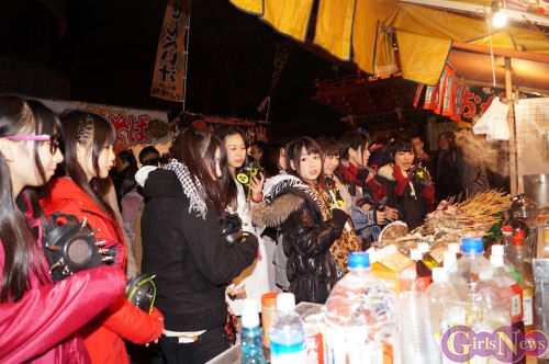 参道を歩いていくと、なんとアリス十番のメンバーはデストロイヤー(ファン)と鉢合わせ。なんとデストロイヤーたちも秋葉原でこれから毎日ライブを行う彼女たちの成功を願いに訪れていたのだ。
