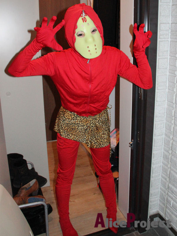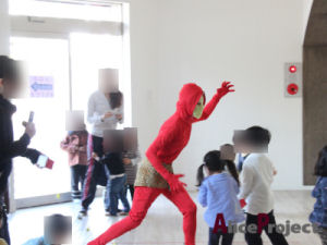 この日、保育園では節分の豆まきが行われ、月村麗華さんが全身赤いタイツでアリス十番のトレードマークであるジェイソンマスクを付け、元気いっぱいの子どもたちを追いかけまわした。