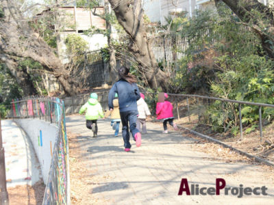 月村麗華“鬼”が子どもたちに近づくと、悲鳴を園内に轟かせながら逃げ回る。