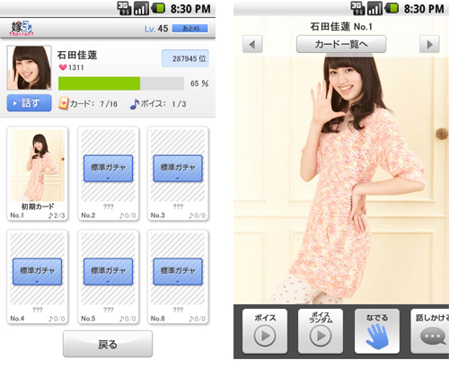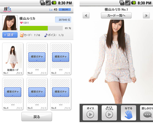 この「嫁コレアイドル」のアプリはiPhone及びAndroidでカードをコレクションして楽しむアプリ。
