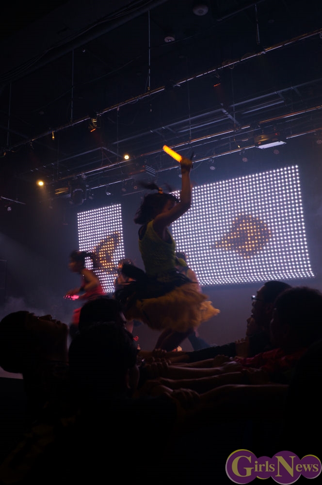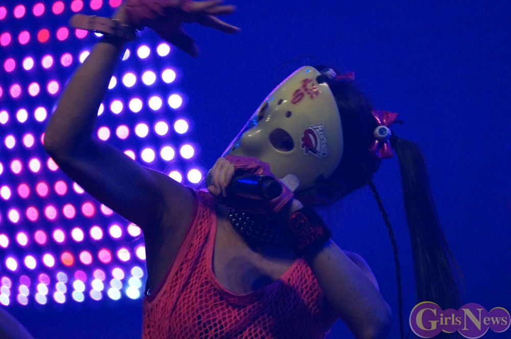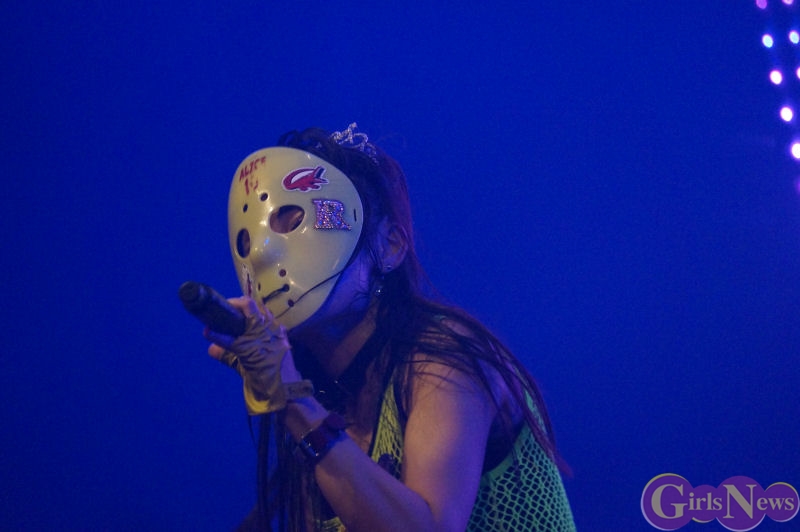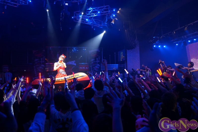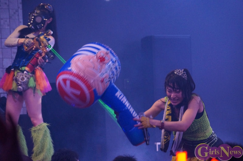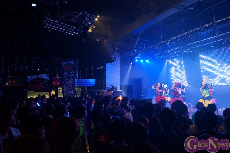 桐谷真央さんは、こっそりメンバーの仮面を回収し、MAD-CROCのステッカーを仮面に貼りスタンバイ完了すると、ついにアリス十番の新曲「MAD-CROC☆BANGING」が披露された。