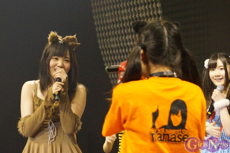佐藤七彩さんは涙をこらえながら「私はいつもファンの皆さんにも“しっかりしてるね”とか“リーダーとしてすごく頼りがいがあるよ”と言われるんですけど、実は本当はしっかりしてなくて、本当はすごく中身 子供っぽいし、喜怒哀楽もすごくて、いつもメンバーにもすごい迷惑とかかけちゃったりしてるんですけど、そういうのがあって、すごく自分がリーダーをやってていいのかなとか、色々悩んだ時期もあって、正直今日の生誕祭までも、私ってリーダーとしてすごく喋れるわけでも無いし、スタイルが良いわけでもないし、ほわいと☆milkでも、かれんちゃん(月宮かれん)とかMCができる子もいるし、私ってリーダーとして何の需要があるんだろうなとすごく思っていて、