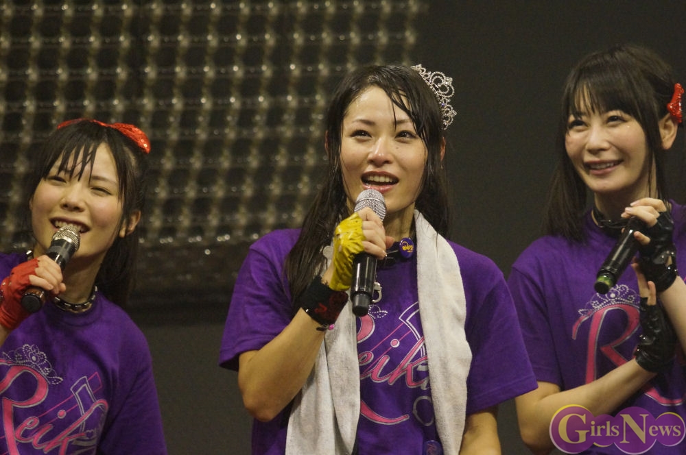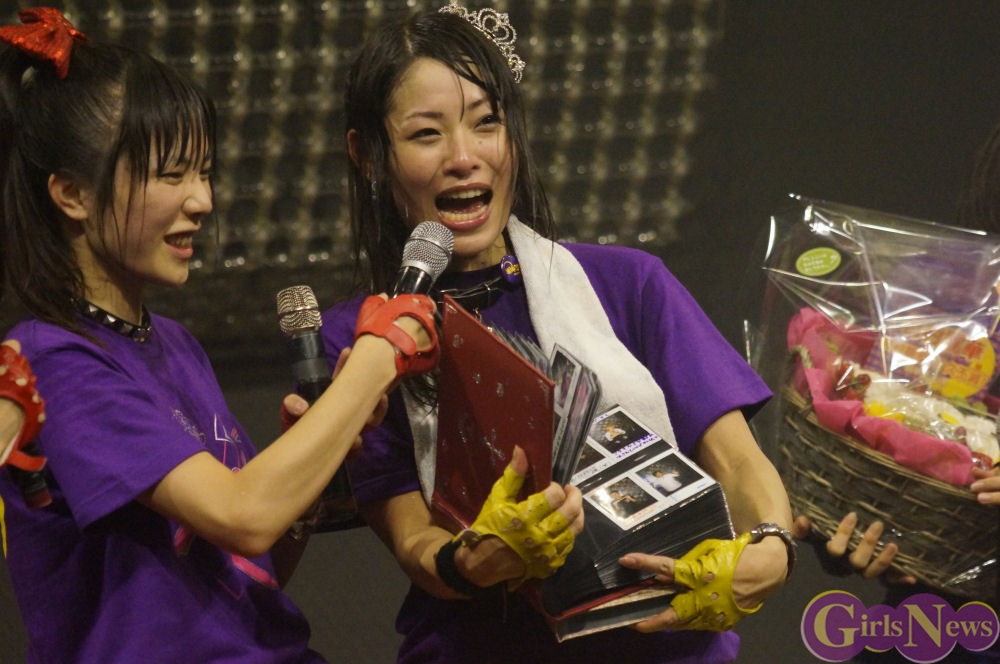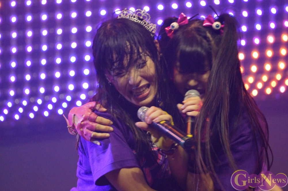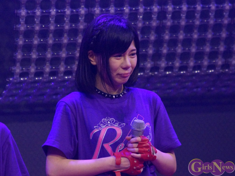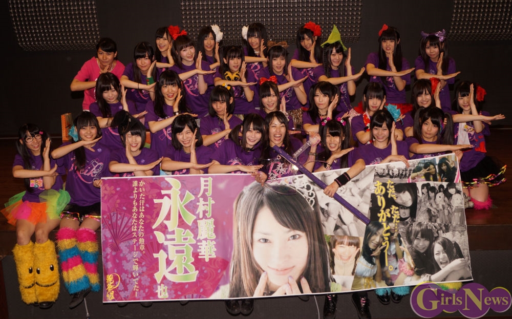 月村麗華さんは「本日はこんなにもたくさんの人が、私、月村麗華の卒業式を見に来てくれて本当に本当に幸せです。アリスプロジェクトという事務所ができてまもなくに所属をして、一番最初にできたトッピング☆ガールズというユニットでそこにはファンというものもいなければ知識もなくて、今じゃ考えられないような割かし立派なポスターをタダで配ったりしてました。そんなときに、無料イベントに毎日出させてもらって、そこで歌って踊って、私始めたのがもう既に24歳というアイドルとしては逆に賞味期限が切れた年齢から始めました。若い子たちの中でまぎれてやって行くのは最初はちょっと戸惑いもあったし、自分にアイドルなんてできるのかなと思っていて、歌も踊りも下手だしと思ってて、それでも1人2人と来てくれる人が増えてアリスファミリーと呼べるファンの人ができて、ぴゅあふるになって対バンライブをたくさんたくさんやって来たんですけど、やっぱりその中でも最年長だし、全然ファンと呼べる人が付かなくてステージに立った日もまったく視線を感じなくて、誰も見てないってことは、誰も私のこと必要としてないんだと思って、何のために一生懸命練習してステージに立ってるのか・・・。いい歳して私何やってるんだろうと思ったこともいっぱいありました。それでもやっぱり夢は捨てられなくて、信じるしかなくて、歯を食い縛って誰も見てないステージの上で一生懸命歌って踊りました。手を抜くことは簡単だったけど、手を抜かないで1人だけ馬鹿みたいに汗をかいて必至でやってたら、その必至さが好きだよって言ってくれる人が1人2人と増えてきて、“私見てもらえてるんだ”って思って誰も見てないと思ってよと思いながら本当に嬉しかったです。そんな私からしたら、今こうしてこんなすばらしいステージでこんなにたくさんの人がいます。私、月村麗華という名前を知って、今私のことを見てくれてることが本当に奇跡のようです。さっき、ライブ中に“おまえが一番”と言ってもらえて、私は今までに一番になったことは、かけっこくらいしかなくて、そんな私でも一番だって言ってくれる人がいて、見ててくれる人がいて、諦めないのってつらいけど、諦めないと見ててくれる人いるし、こんな幸せな気持ちになれることがあるんだってみんなのお陰で知ることができました。今の私がいるのはメンバーやスタッフさんや家族や仲間や、麗華組とアリスのファンのみなさんとお仕事をくださる方とか、写真を撮ってくれてる人とか記事にしてくれる人とか、P.A.R.M.Sでいつも見ててくれる人とか、たくさんのみんなのお陰です。本当に1人じゃ何にもできないこんな消えちゃいそうなちっぽけな人間をこんなに大きく盛大に卒業式をやってもらっちゃったりして本当に幸せです。泣いてばかりだけどこの決断に悔いはありません。本当に本当に本当に本当にみんな1人1人にお礼が言いたいです。本当に今までこの3年弱支えて来てくれた皆さん本当にありがとうございました。」とファンに感謝の気持ちを伝えました。
