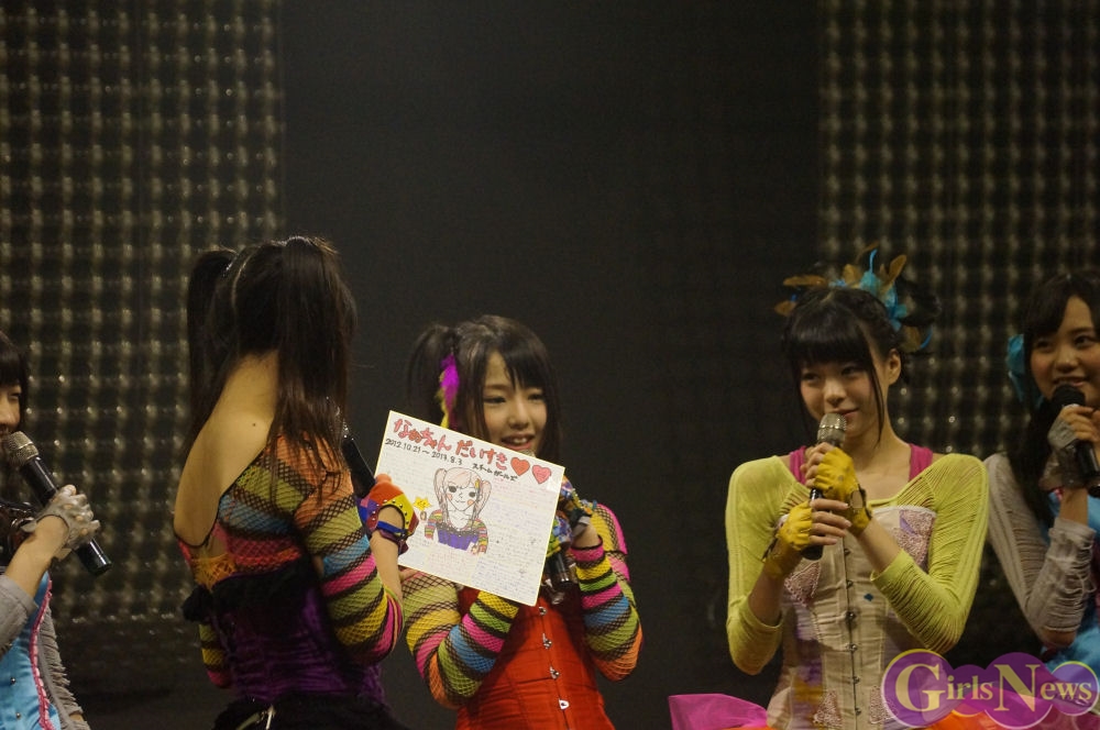 スチームガールズの小柳朋恵さんは「なあちゃん卒業おめでとうございます。いつも一緒にいたなあちゃんが卒業だなんて、本当に今この場にいても信じられないです。なあちゃんと私は地元で噂のラップコンビで、MCの時も隣通しで私たち2人はお調子者で良く2人でふざけあって、メンバーにウザがられてたね。なあちゃんとの最初の出会いはいつだっけ? でも、深く関わるようになったのはOZ結成がきっかけだったよね。第一印象は瞳がキラキラしてて、すごく大人しくてカワイイ子だなって思ったよ。でも今思えば猫被っていたんだね。そう言えば私がいつも下ネタばっかなあちゃんに言ってたらなあちゃんよく怒ってたよね。懐かしいね。それでOZメンバー全員話し合いになったこともあったよね。今では良い思い出だね。いっつも一緒にいたから居なくなるなんて考えられない。でもなあちゃんは次のステップのアリス十番に昇格してください。私も必ず行くから待っていてね。また同じステージで笑い会おっ!大好きだよ!」と祝福。