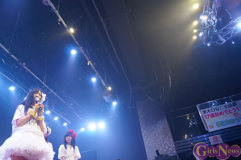 黒木ひなこさんは「今日は素敵な横断幕やお花やTシャツなど本当にありがとうございました。私はアリスプロジェクトに入って約半年ぐらいなんですけど、最初アリス十番さんに憧れてヘドバンをするつもりが、気づいたら街角景気☆JAPAN↑で茶色のソフトクリームを被ってて、でもそのあとにぱー研!に入って、ぱー研!のリーダーになって本当に毎日充実してて、気づいたらもう8月で、本当に最高の16歳でした。私は今高校2年生で普通に高校に通いながら活動してるんですけど、正直、本当に両立がへたっぴで、高校辞めちゃいたいと思ったことも何度もあって、高校辞めてアイドルに専念したいと思った時期もあったんですけど、私が中学生の頃に初めて自分で決断したのが今の高校に入りたいってことで、私がこの仕事をしたいと決めたのも、私がアリスプロジェクトに入ることを決めたのも自分の決断だから、自分を裏切っちゃだめだなと思って、絶対やり遂げようと思いました。私は、ぱー研!のリーダーなんですけど、リーダーってのどかさん(桜のどか)や皐月さん(新矢皐月)や七彩さん(佐藤七彩)みたいに、しっかりものですごく頼れる存在ってイメージがあって、私は全然頼れる存在になれてないっていうか、すごい話を聞くのもへたっぴだし、思ったこととかもストレートにぶつけちゃうからたくさんたくさんメンバーには迷惑をかけてきたと思います。でもその中で、ひなのことを支えてもらってありがとう!動員1位を目指してぱー研!トリを目指してこれからも頑張っていこうね! 私は1年後自分が何してるんだろうって全く想像がつかなくて、5年後・10年後なんてもっともっと想像がつかなくて、でも先が見えないからこそ、無限に可能性があるのかなと思うので、17歳のひなも根拠の無い自信とへたっぴな笑顔でこれからも頑張っていこうと思います。本当に素敵な生誕祭ありがとうございます。そして、2013年8月21日は世界で一番 黒木ひなこが幸せものです。」とメンバーやファンに感謝の気持ちを語った。
