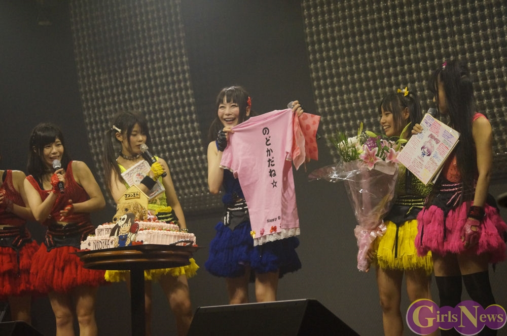 お約束の花束や色紙、ヲタ図鑑、生誕Tシャツなどプレゼントの応酬。アリス十番のメンバーや後輩となるぱー研!のメンバーからも誕生日プレゼントが贈られ、桜のどかさんは感激の嵐。